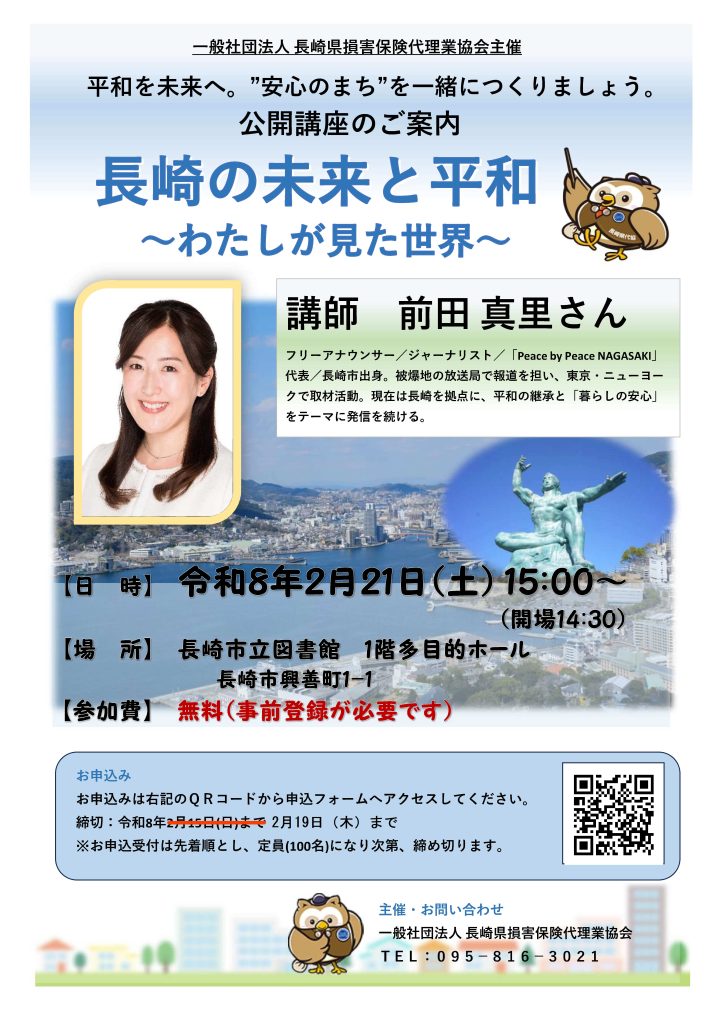 長崎県代協主催公開講座『長崎の未来と平和~わたしが見た世界~』を開催いたします。